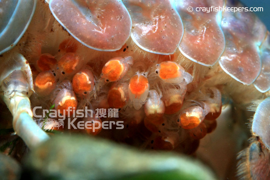 這個名稱約在兩年前在日本的拍賣網上看過,當時已覺得全身有著不規則白化的"幽靈美螯"非常吸引! 直至在德國族水界正式發表這款首發自日本,外表充滿神秘詭異的"幽靈美螯"時,為螯蝦好愛者帶來了很大驚喜! 據說這款"幽靈美螯"是出自幾隻色彩變異的美螯種蝦再挑選繁殖出來。在沒有概定的方程式下,就讓我們做一次實驗,試試有沒有可能出現港產的"clarkii-ghost"吧!圖中的正抱著幼體的美螯母蝦身體帶灰藍滲透著橙色,種公蝦是有著近似幽靈獨特圖案的白美螯。期待子蝦成長後能挑上特異的個體!